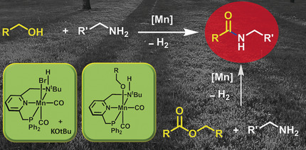 08. A. Kumar, N. A. E. Jalapa, G. Leitus, Y. Diskin Posner and D. Milstein, Direct synthesis of amides by the dehydrogenative coupling of amines with alcohols or esters catalysed by a new manganese pincer complex. Angew. Chem. Int. Ed., 2017, 56, 14992.