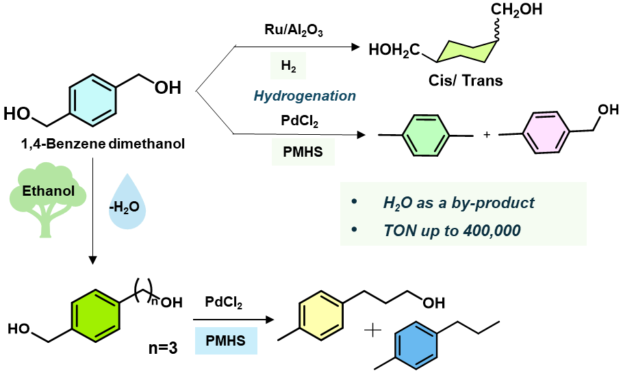50. C. Ghosh, R. M.-Hernandez, M. J. Andrews, and A. Kumar* Transformation of PET-derived 1,4-benzenedimethanol to make useful alcohols, RSC Advances, 2025, 15, 21424-21428.
